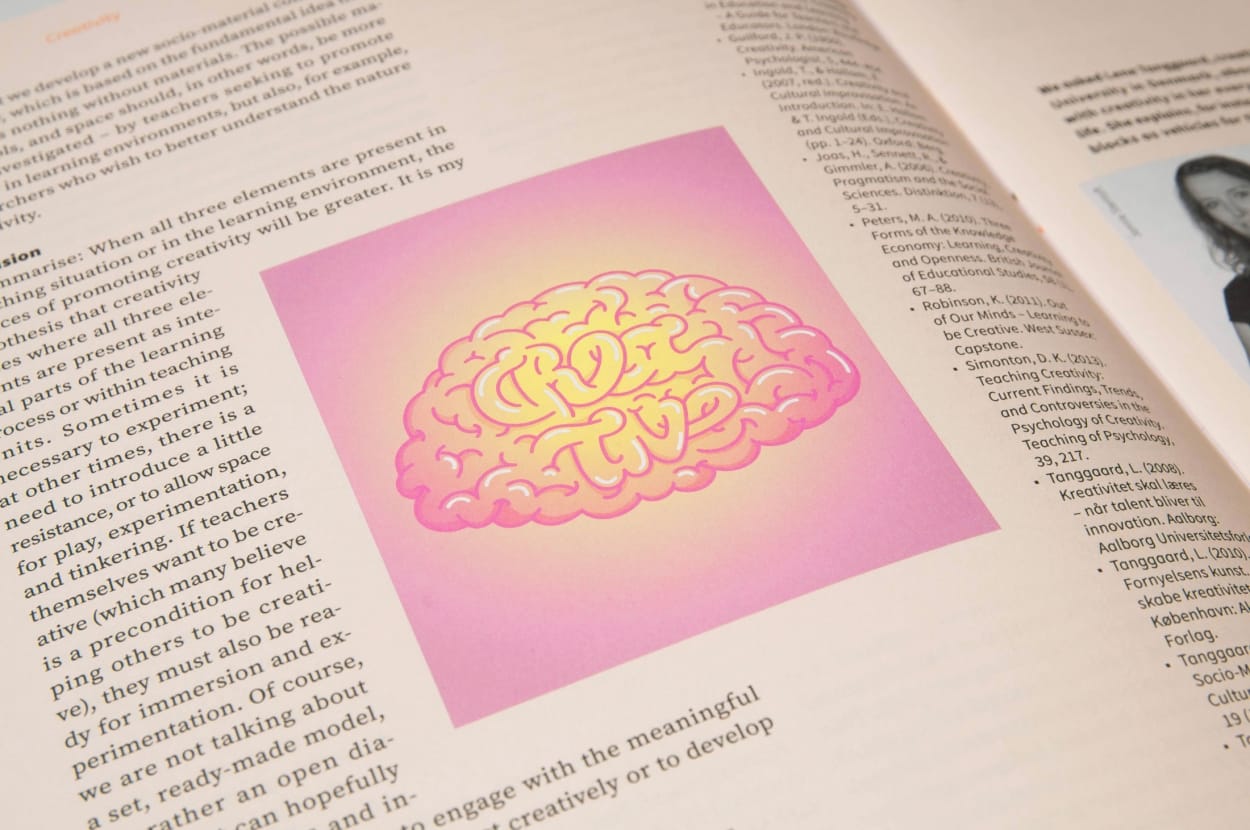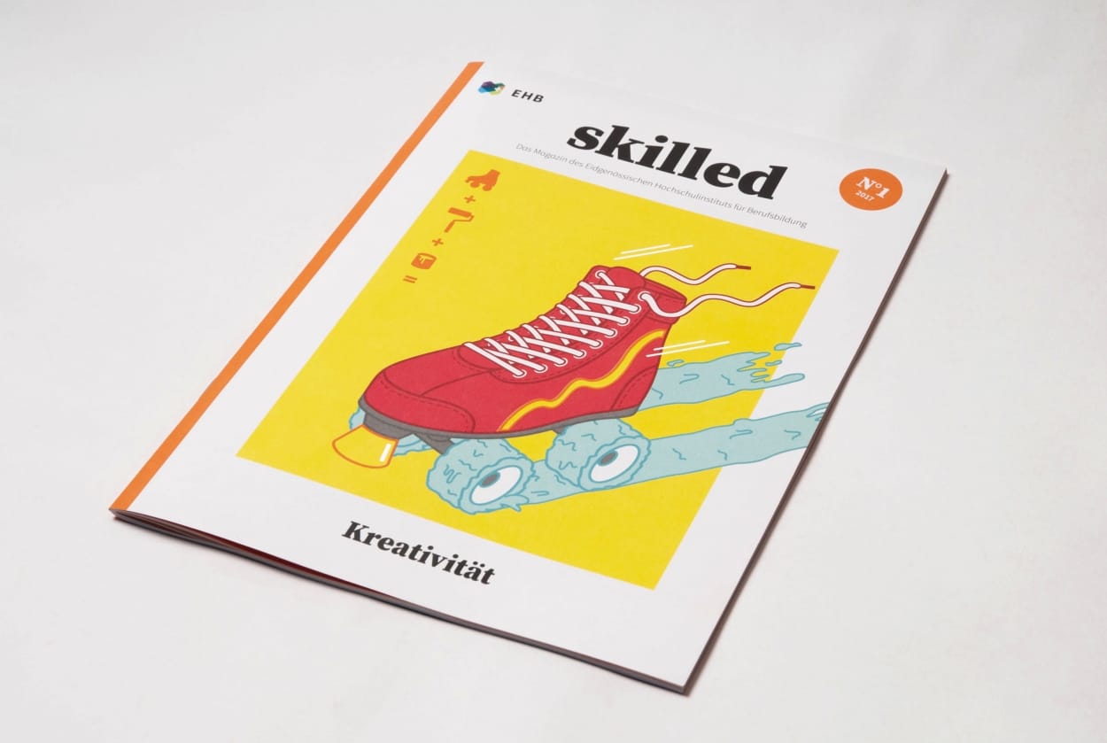 Das neue Kundenmagazin des Eidgenössischen Hochschulinstituts für Berufsbildung EHB richtet sich in einer Auflage von 2000 Exemplaren an Berufsbildungsverantwortliche in der ganzen Schweiz. Die Illustration für die Titelseite soll jeweils von Lernenden gestalterischer Berufe konzipiert und realisiert werden. Das Thema der allerersten Nummer lautete «Kreativität». Am Wettbewerb machten gleich mehrere GrafikerInnen-Klassen mit. Auch Audrey reichte ein und holte sich gleich den besten Platz auf der Titelseite sowie einen weiteren im Innenteil. Bundesrat Schneider-Amman hats gefallen. Uns natürlich auch.