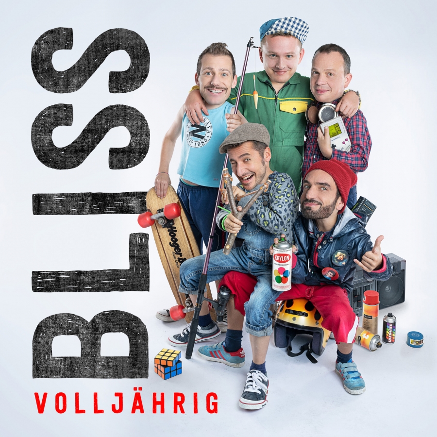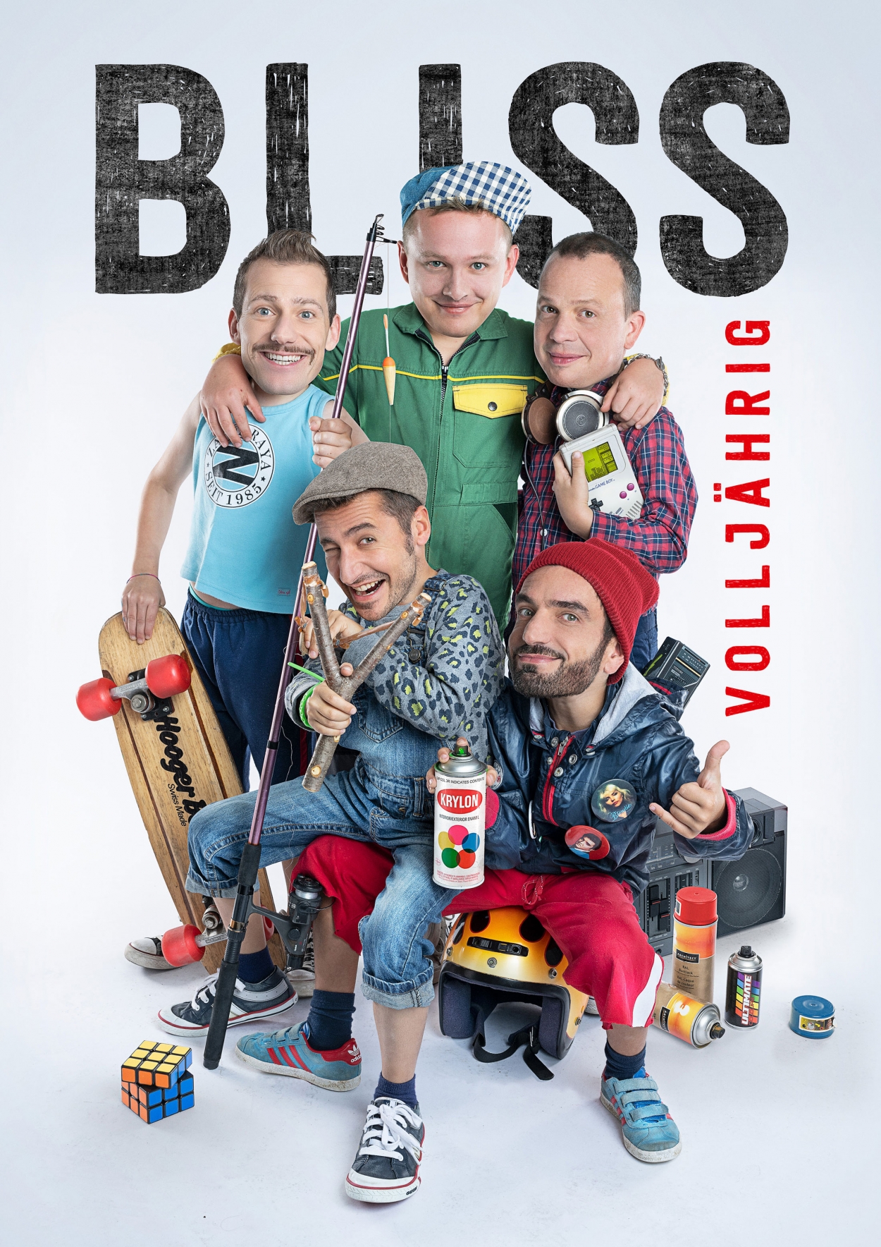 Nach 20 Jahren Bandgeschichte wird es Zeit, erwachsen zu werden – denkste. Bliss öffnet ihr Tagebuch und erlaubt unbeschwerten Einblick auf Lausbubenstreiche in Zeiten, als Musik noch ab Kassette kam, der Schnurrbart sich auf männlichen Oberlippen kräuselte und die ersten Küsse einszueins beim Flaschendrehen getauscht wurden. Fürs neuste Programm «volljährig» kreierte Formeldrei das Keyvisual.