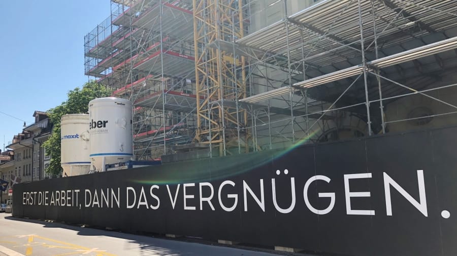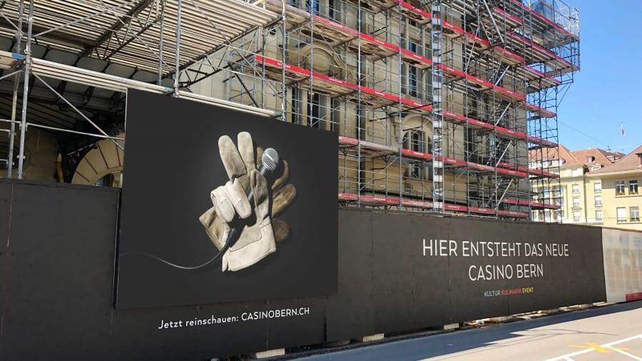 Seit einem Jahr formiert sich hinter den hohen Bauwänden ein neues Kulturzentrum. Zur Halbzeit verwandelt Formeldrei die bisher leeren Flächen zum Hingucker. Und er verspricht einiges: Eine Verwandlung, die mit der Eröffnung im Herbst 2019 die Herzen der Bernerinnen und Berner höher schlagen lassen wird.