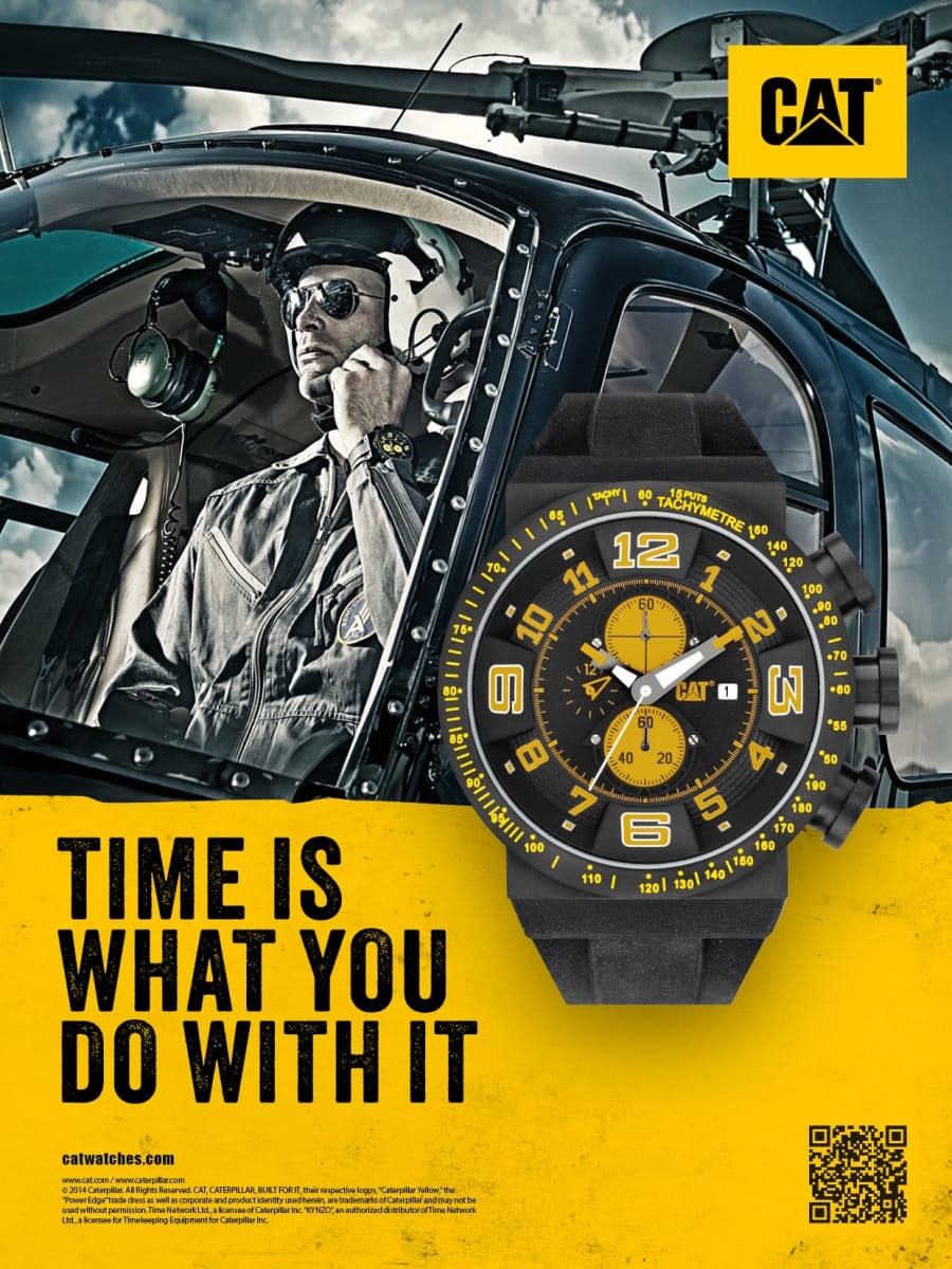 Das erste Sujet einer neuen Motivserie der internationalen CAT-Uhrenkampagne ist da. Was passt besser in die männliche Welt der Rugged Time Keepers von Cat Watches als ein Helikopterpilot?
