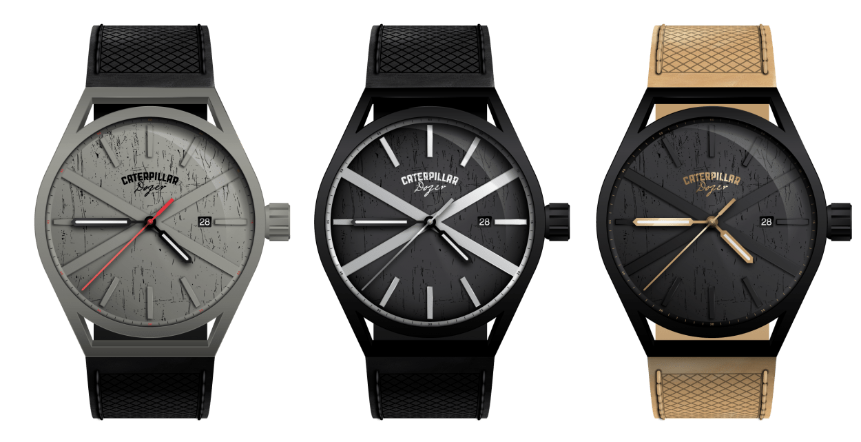 3 Linien und 16 Modelle von schlicht schwarz über modisch bis zu sportlich – CAT WATCHES produziert die ersten Kollektionen rundum entworfen von Formeldrei. Die neuen Designs mit einigen Details, die man so noch nicht gesehen hat, kommen weltweit auf den Markt.