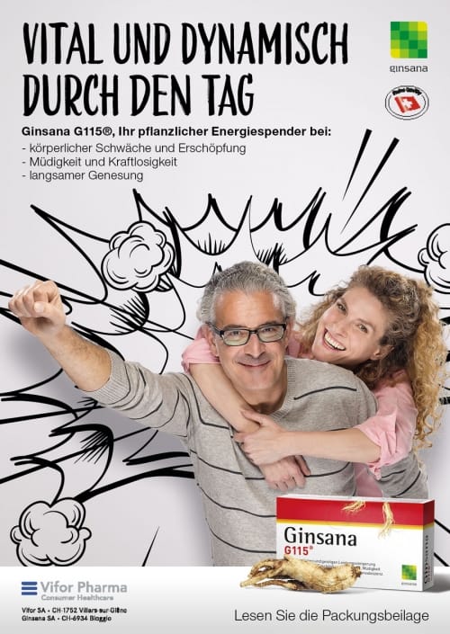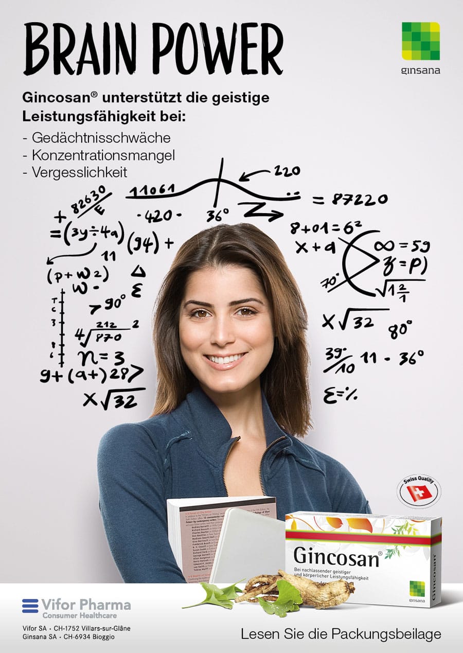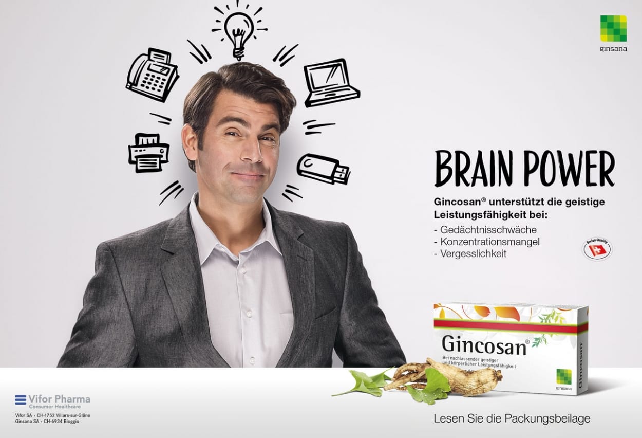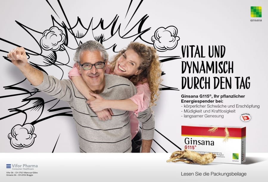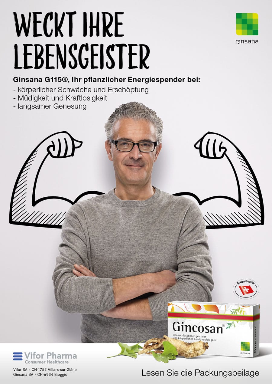 Die neue POS- und Inseratekampagne für Ginsana und Gincosan illustriert die Kraft des Klassikers auf dem Punkt – klar, einfach und impactstark.