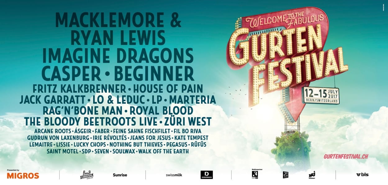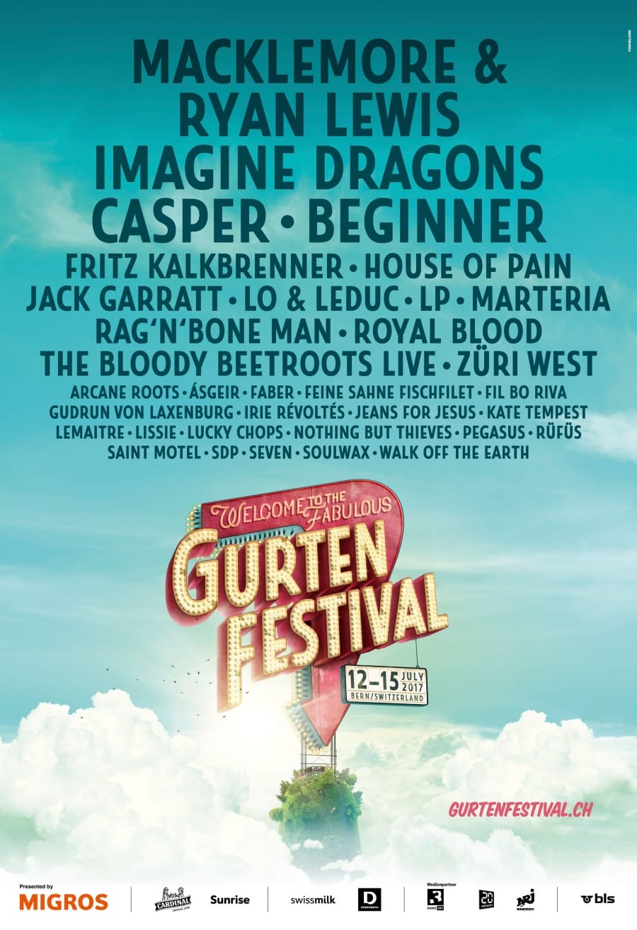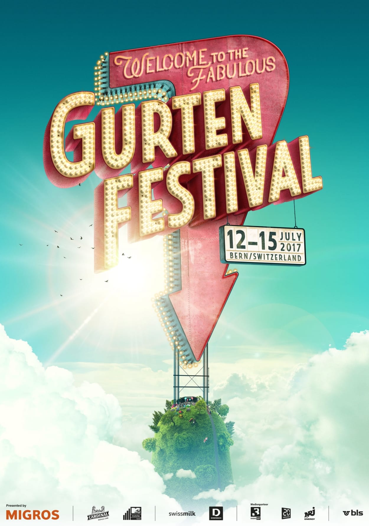 Hoch über Bern, und zwar sehr hoch, sogar über den Wolken, strahlt im Sommer 2017 ein Ereignis am hellsten – das Gurtenfestival. Das neue Visual macht klar: Hier spielt die Musik, hier gibts 4 Tage Party mit den ganz grossen Acts der Stunde...