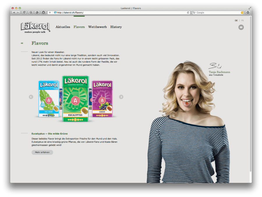 This really makes people talk... Dass einem das Sprechen mit dem feinen schwedischen Klassiker für Hals und Stimme ein bisschen leichter fällt, war bereits bekannt. Dass Läkerol in der Schweiz mit einem neuen, runderen Drop und einer Packung mit mehr Inhalt zum Neustart ansetzt, musste aber mal klar gesagt werden. Und wer passt für diese Rede besser, als jemand, der selbst viel zu sagen oder noch schön singt und viele Auftritte bestreitet? Die neue Markenbotschafterin für Läkerol in der Schweiz ist Tanja Bachmann, die Frontfrau der angesagten Band TinkaBelle. Tönt gut? Sieht auch so aus!