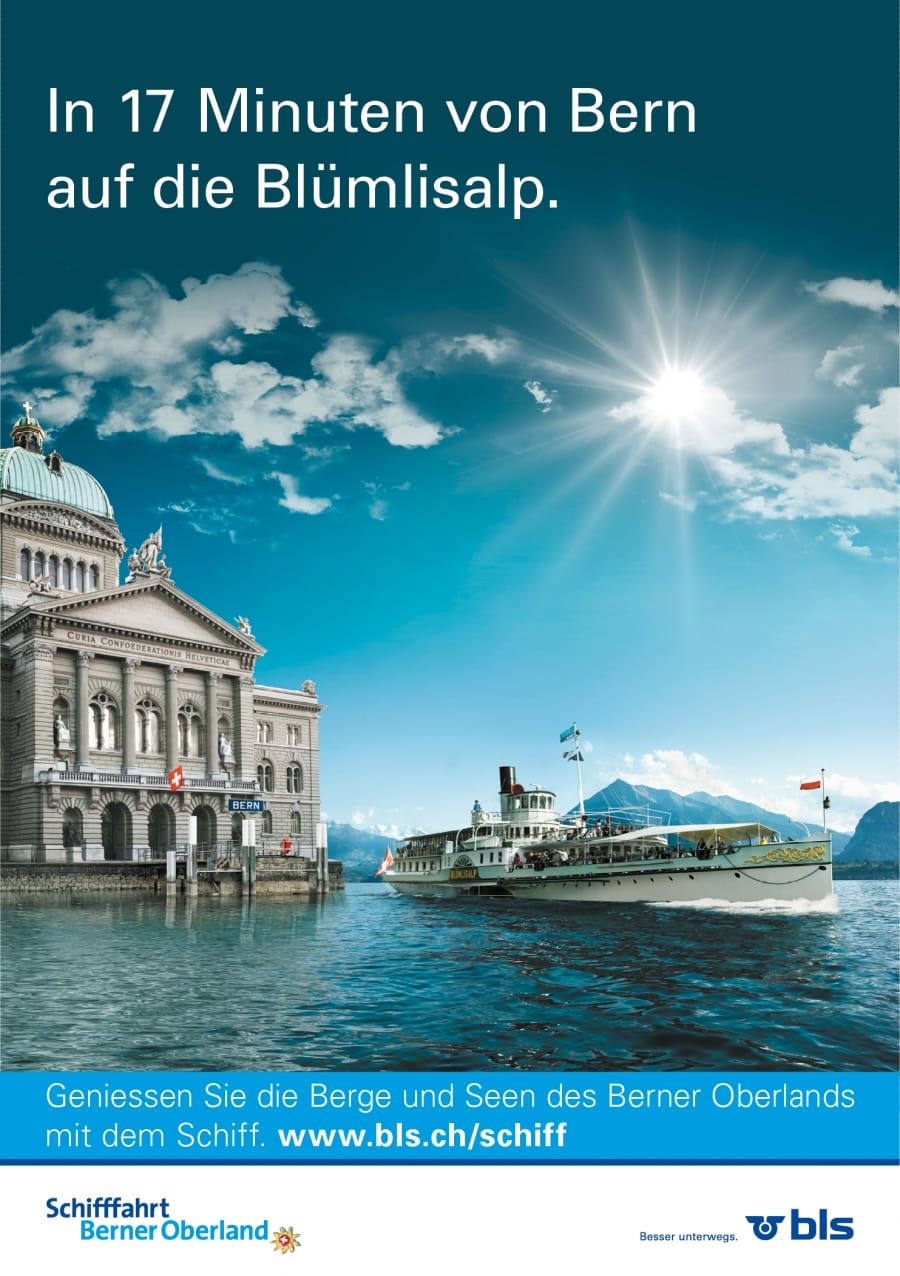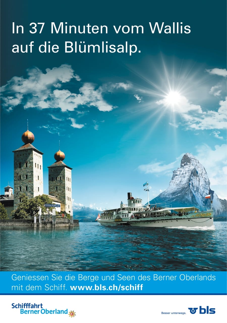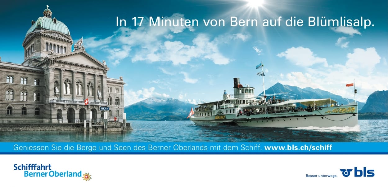 Im Pitch gewinnt Formeldrei das Budget der Schifffahrt Berner Oberland. Ausgangspunkt der Zusammenarbeit ist eine neue Kampagne für die Stadt Bern und das Oberwallis, welche die Nähe der Schiffe auf den wunderschönen Oberländer Seen als Ausflugsziel dramatisiert. Fotoretouchen zeigen den Stockalperpalast, das Matterhorn und das Bundeshaus als Walliser bzw. Berner Wahrzeichen direkt an den Ufern des Thunersees.