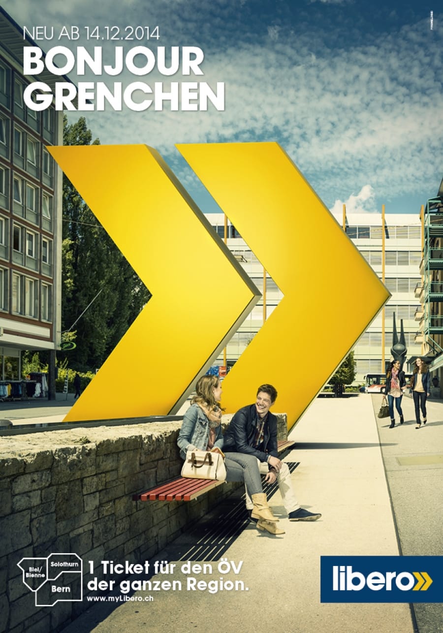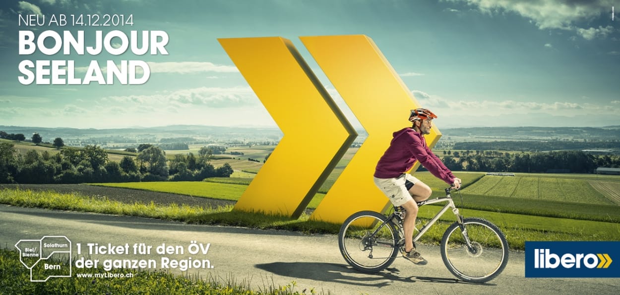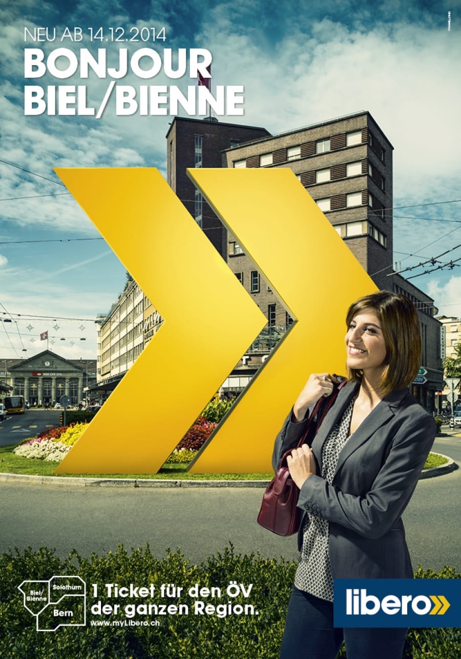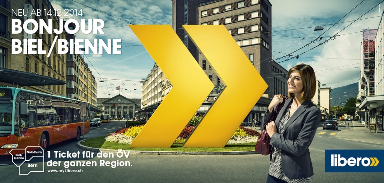 Biel, das Seeland, Grenchen und der Berner Jura stossen neu zum Libero-Tarifverbund, die ganze Region ist ab dem 14. Dezember 2014 mit einem einzigen Ticket für den ganzen Öffentlichen Verkehr unterwegs. Von der Gebietserweiterung profitieren aber auch die bestehenden Libero-Kunden: Direkt am Automaten lösen sie jetzt Fahrausweise für das Pendeln in Richtung Norden oder für spontane Ausflüge in die Wanderregion des Juras. Ab sofort kommuniziert der Libero zweisprachig. Konsequent stehen alle Informationen auf Deutsch und Französisch zur Verfügung – am Automaten, auf der Website, in allen Drucksachen und auch in der Werbung. Und wie "leger" der Libero die Sprachgrenze überwindet, beweist auch die Einführungskampagne. Die Plakate und Inserate, welche vornehmlich in den neuen Gebieten erscheinen, zeigen Städte- und Landschaftsbilder der Region und heissen zukünftigen Fahrgäste des Liberos mit einem freundlichen BONJOUR! herzlich willkommen. Zu allen Neuerungen des Libero-Tarifverbunds informiert ab dem 14.12.14 die rundum neu gestaltete und für Tablets Smartphones optimierte Website www.myLibero.ch.