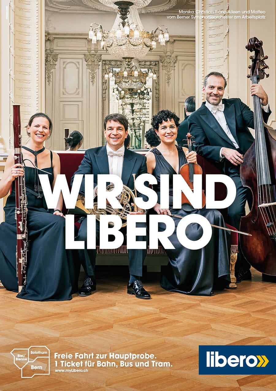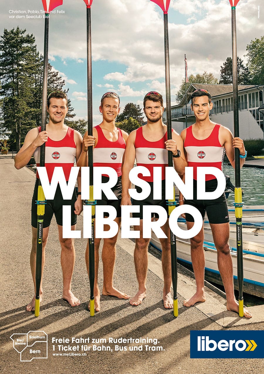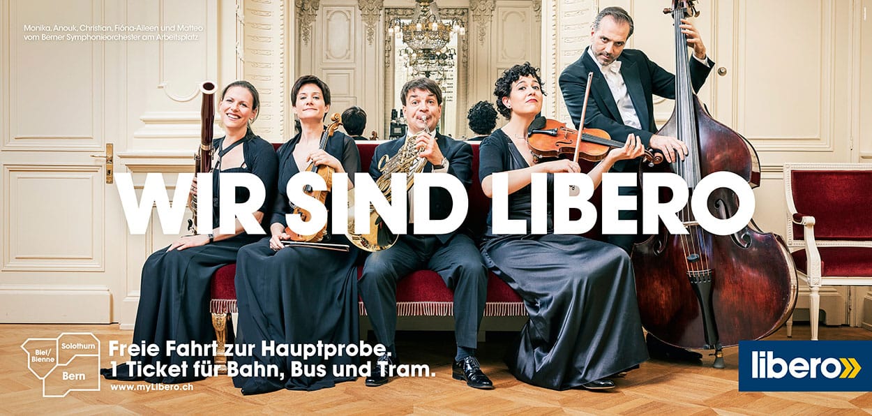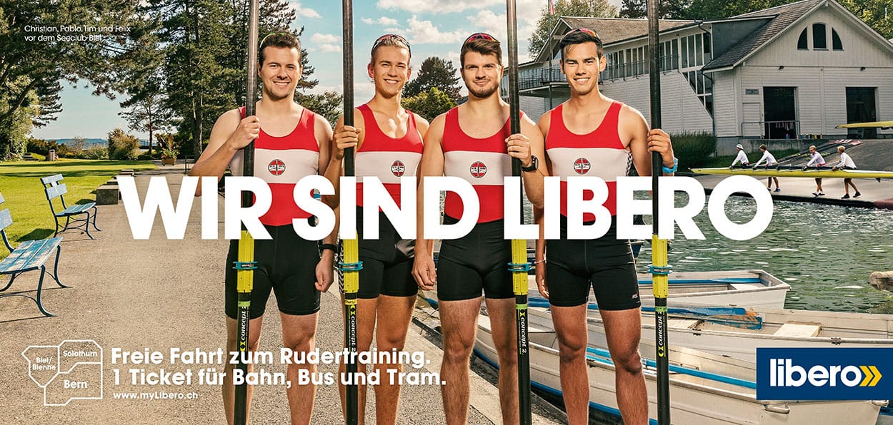 Für die aktuellen Sujets kriegten wir die sportlichen Jungs vom Seeclub Biel und fünf Musikerinnen vom Berner Symphonie in sensationell schönen Kulissen vor die Linse. Hinter der Linse stand wiederum Michael Sieber. Und deutlich wird auch diesen Herbst: Mit dem Libero-Ticket gelangt man ganz einfach überall hin.