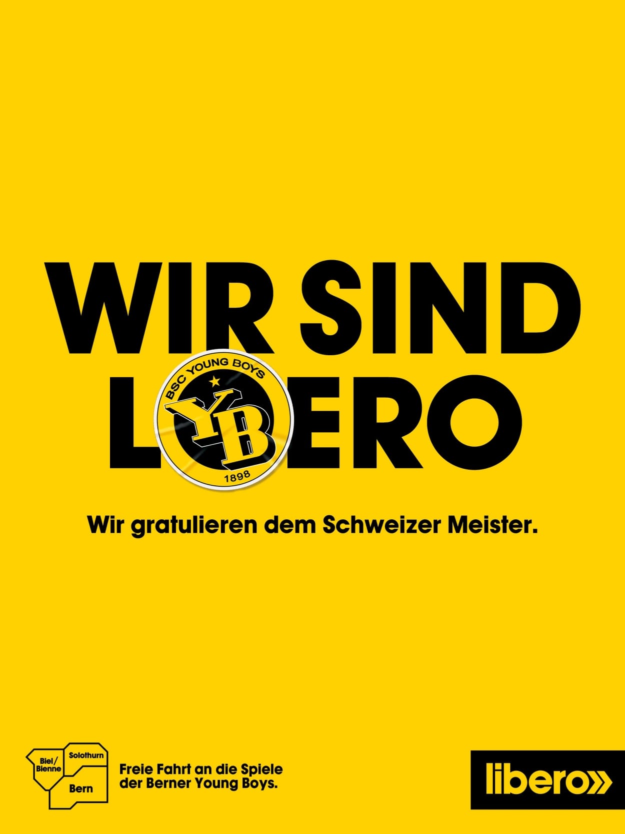 Am Ende kommt alles gut: Zusammen mit unserem Kunden Libero feiern wir den Meistertitel 2018. Flanke an Flanke seit der Agenturgründung sorgt Libero für freie Fahrt an die Heimspiele der BSC Young Boys – und wir für schlagfertige Kommunikation.