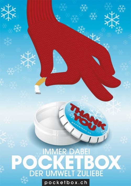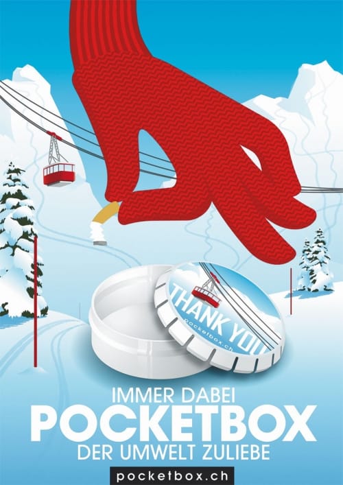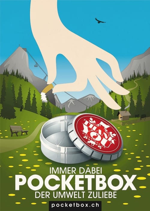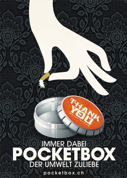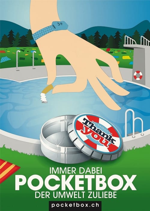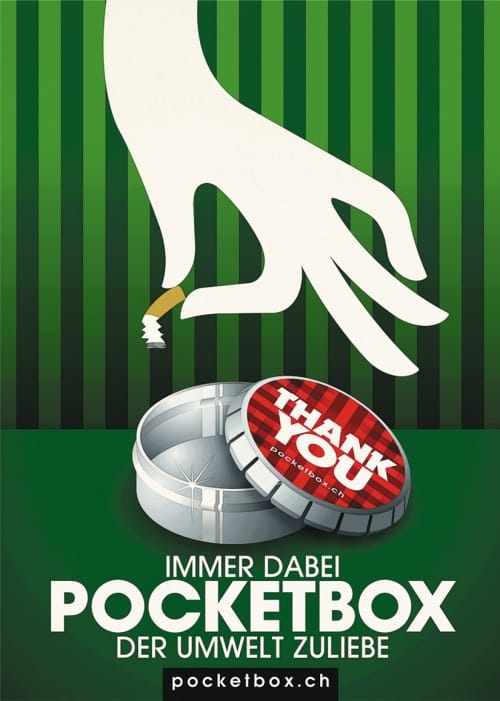 Seit April 2008 bietet British American Tobacco Switzerland Rauchenden über 18 Jahren gratis einen neuartigen Taschenachenbecher an. Die POCKETBOX, in welcher Zigarettenreste sauber gesammelt werden können, sensibilisiert die Zielgruppe für die Problematik achtlos weggeworfener Stummel. Über die Website www.pocketbox.ch können Rauchende bis zu 5 Boxen gratis frei Haus bestellen. Für Firmen wie Campingplatzbetreiber, Golfplätze oder Schwimmbäder stehen zusätzlich verschiedene Distributions-Kits für die Verteilung vor Ort zur Verfügung. Formeldrei zeichnet verantwortlich für das Design der Boxen, der Website sowie der Promotionsmassnahmen für Partnerfirmen.