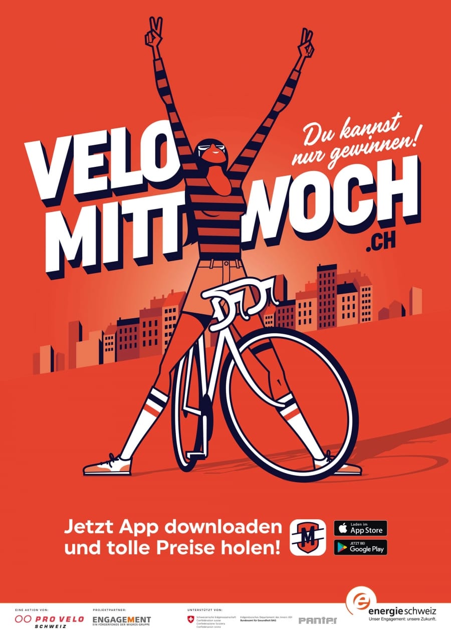 Fitness, Flow und frische Luft – wer Velo fährt, kann nur gewinnen! Das weiss man bei Formeldrei schon längst, und darum passt es umso besser, dass die wohl velophilste Agentur Berns im Pitch das Budget für den Velomittwoch gewinnen konnte. Die schweizweite Mitmachaktion von Pro Velo Schweiz will Jung und Alt motivieren, das gesündeste, umweltfreundlichste, schlicht beste Verkehrsmittel aller Zeiten auch unter Woche zu benutzen. Und weil Solches über einen Wettbewerb besonders gut funktioniert, basiert der Velo-Mittwoch auf einer modernen App, die alle Mittwochsfahrten ab 3 gefahrenen Kilometern sauber aufzeichnet. Das geht ganz einfach: Man wählt eine Challenge, startet mittwochs die App und kann tolle Preise gewinnen.