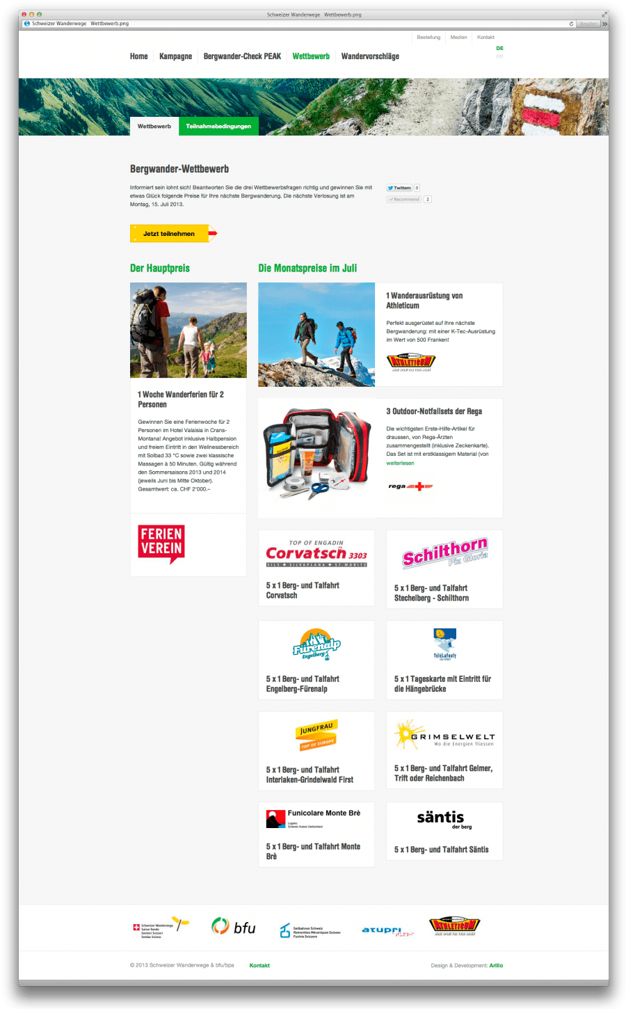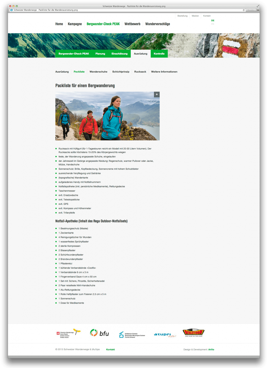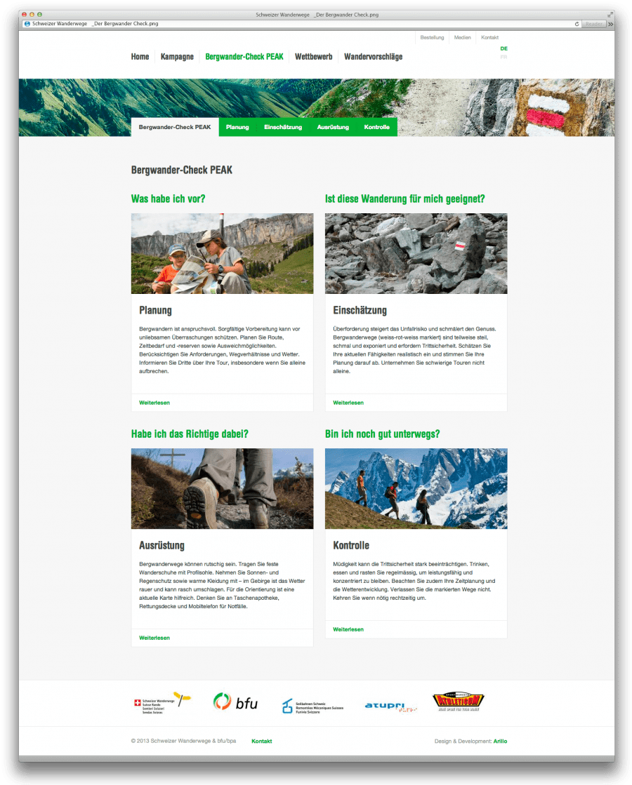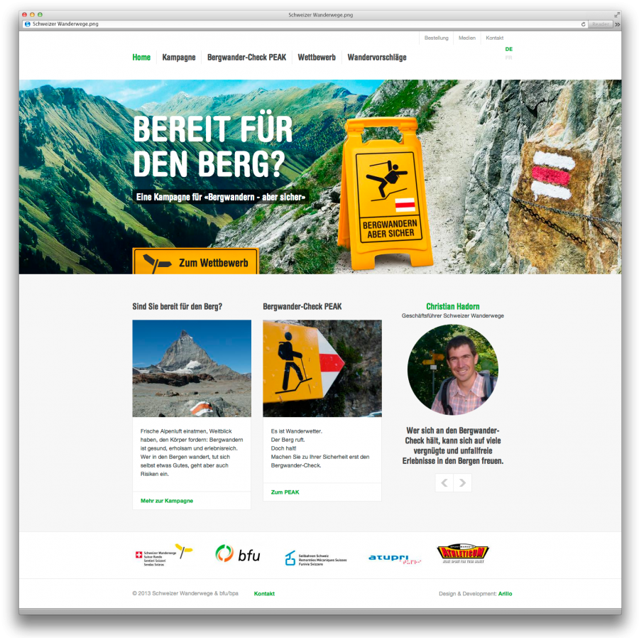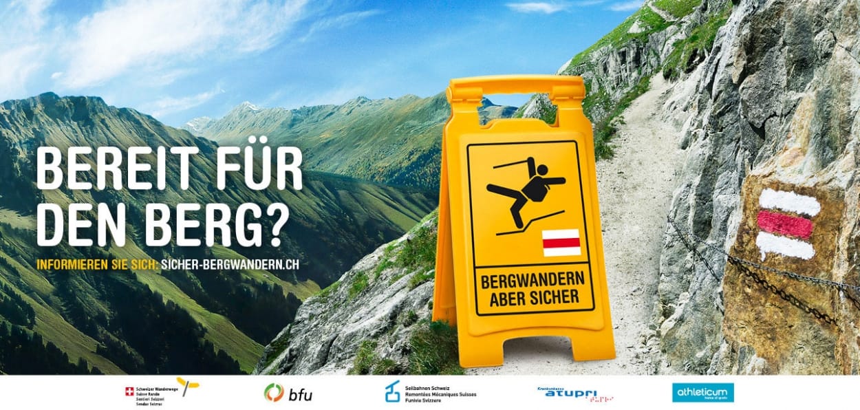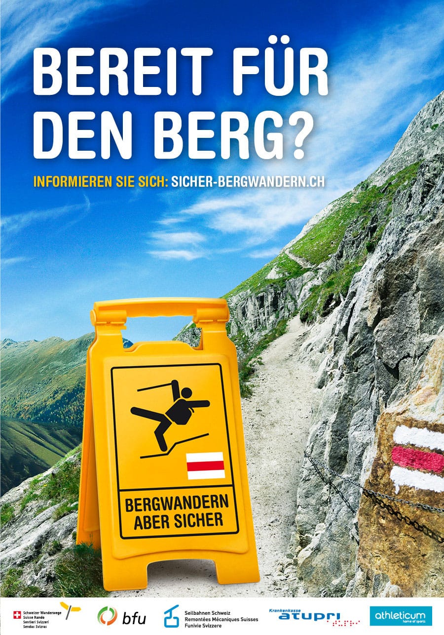 Wandern ist nach Radfahren bzw. Biken die zweitbeliebteste Sportart der Schweizer. Dabei werden mögliche Gefahren oft unterschätzt, insbesondere beim Bergwandern auf den Weiss-Rot-Weiss markierten Wegen. Im abschüssigen Gelände, auf exponierten Wegen und steilen Felsvorsprüngen kann ein Sturz schon nach einem einfachen Stolpern schlimme Folgen haben: jährlich ereignen sich über 8500 Unfälle, rund 40 verlaufen tödlich. Entsprechend lautet die Botschaft der neuen Kampagne „Bergwandern – aber sicher“. Sie soll auf das erhöhte Unfallrisiko aufmerksam machen und über die Anforderungen und Umstände des Bergwanderns informieren. Formeldrei gewinnt den Auftrag im Rahmen einer Konkurrenzpräsentation