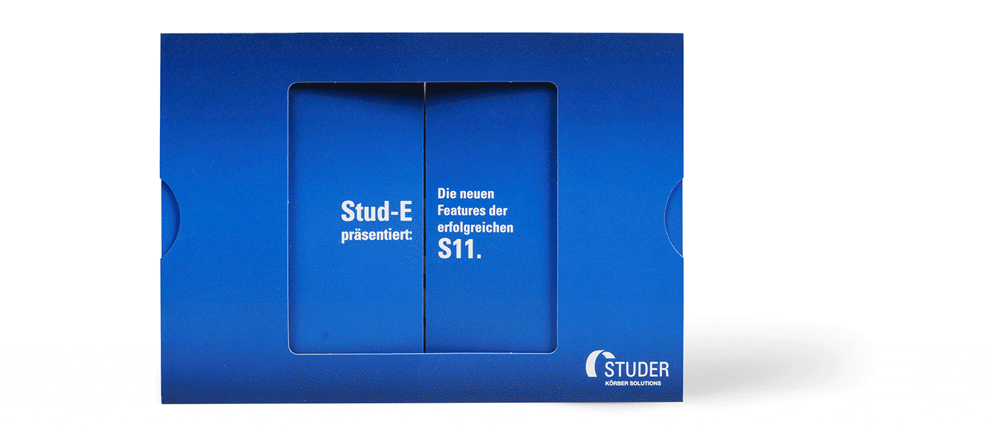 Die Fritz Studer AG, gegründet 1912, ist Markt- und Technologieleader im Universal-, Aussen-, Innenrund- sowie im Unrundschleifen. STUDER steht für Hardware, Software, Systemintegration und Service in Schweizer Spitzenqualität. Mit massgeschneiderten Komplettlösungen für jede Schleifaufgabe profitieren die Kunden von einem einzigartigen Knowhow für alle Arten von Schleifprozessen. STUDER, das ist «Art of Grinding» und eine beeindruckende Erfolgsgeschichte. Wir sind stolz, für dieses Unternehmen arbeiten und seine Innovationen auf Papier, an Messen und in digitalen Channels inszenieren zu dürfen. Für die jüngste Neuheit, die neue hochproduktive und kompakte Rundschleifmaschine S11, haben wir den 3D-Character Stud-E entworfen und zusammen mit Neil Stubbings und Efex in einem modernen Präsentations-Movie umgesetzt. Das ist STUDER auf den Weg zur Industrie 4.0.