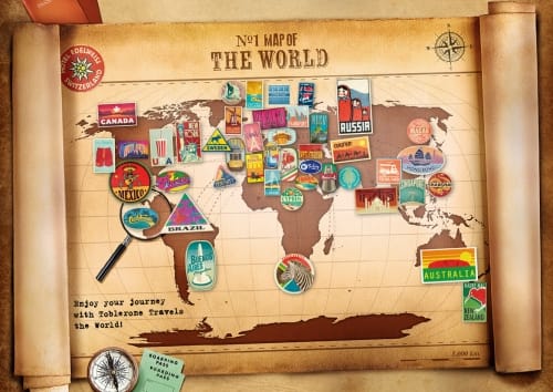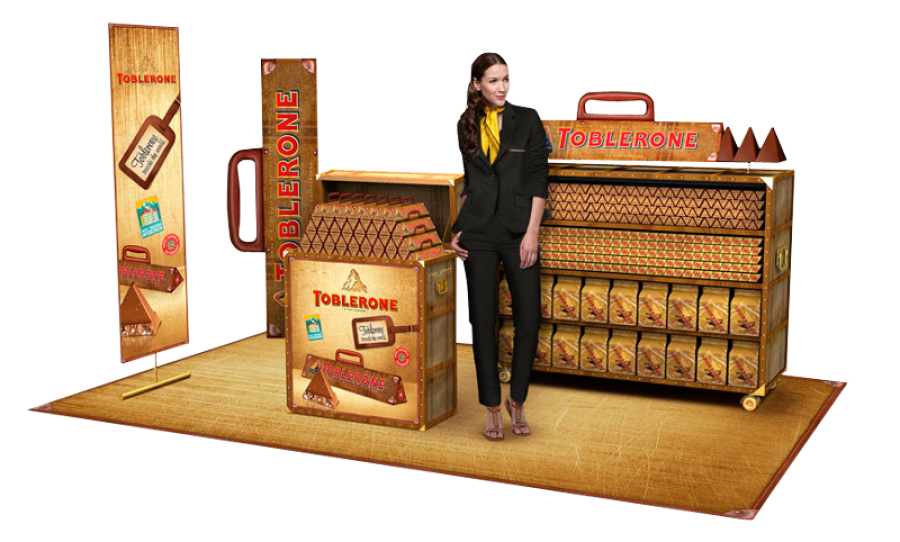 Kraft Foods schickt die berühmte Schweizer Schokolade von Airport zu Airport rund um den Globus. Formeldrei entwickelt die POS-Aktivitäten. In jedem Land werden die Stände mit spezifischen Sujets dekoriert. Die von Hand gestalteten Motive lehnen sich an das Design der beliebten früheren Kofferkleber an.