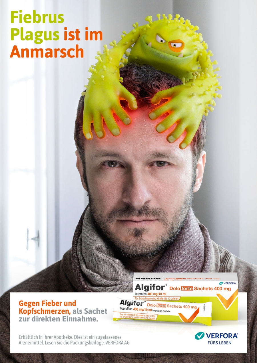 Sie nennen sich Kopfus Klopfus, Schnupfus Maximus, Pollus Juckus oder Fiebrus Plagus und sehen lustig aus, sind aber total fies. In humorvollen, alltagsnahen Spots zeigen sie, wie wirkungsvolle Produkte den kleinen Übeln des Alltags zu Leibe rücken.